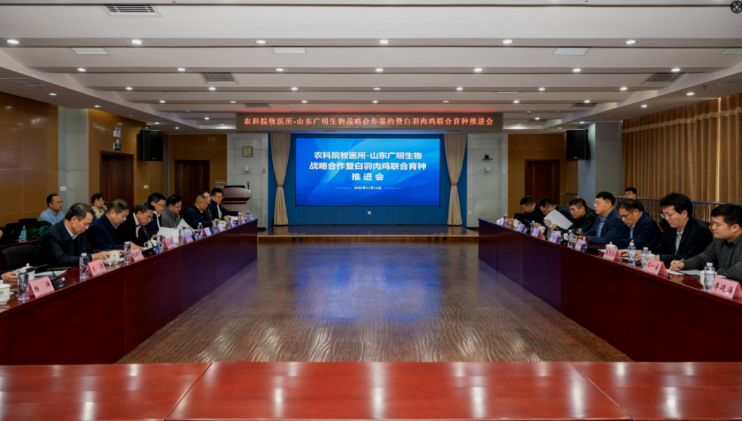 近日,由济南财金集团牵头组建的泉农司晨基金所投企业——山东广明生物科技有限公司(简称“广明生物”)与中国农业科学院北京畜牧兽医研究所(简称“牧医所”)在北京举行战略合作签约仪式暨白羽肉鸡联合育种推进会。中国农科院副院长孙坦、全国畜牧总站站长魏宏阳、济南市农业农村局一级调研员李新民出席会议,济南财金集团权属济南财投新动能私募基金管理有限公司作为泉农司晨基金管理人受邀参会。